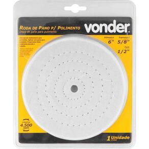 Roda de pano para polimento 6 vonder 3599066000 Conteúdo da embalagem: 1 roda de pano Utilizada em motoesmeris para polimentos. Aplicar com pasta para polimento. Proporciona maior rendimento durante o trabalho Diâmetro externo da roda: 6 Espessura da roda: 5/8 Diâmetro do furo da roda: 1/2 Rotação máxima rpm : 4500 /min - e cdc : legal: 90 dias Ean: 7893946161620