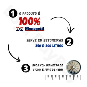 - Produto de alta qualidade e durabilidade. - Aconselha-se um profissional para manutenção do seu equipamento.. ============================= Item: Roda Plástica para betoneiras 250 / 400 Litros
