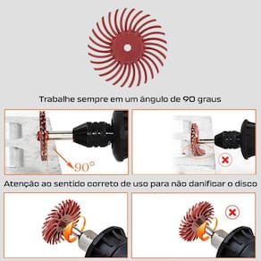 - Marca: Dremax - Referência: RPC001 - Cor: Vermelho - Gramatura: Grão 220 médio - Material: Nylon + óxido de alumínio -diâmetro: 25mm Pol. - Trabalha em conjunto com hastes para disco de corte para micro retíficas - As escovas abrasivas radiais têm cerdas muito flexíveis, que permitem a remoção da camada superficial exterior sem danificar a camada de base abaixo - Ótimo para polir pedra, madeira, alumínio, latão, bronze, aço carbono, ferro fundido, aço inoxidável e outros metais - A escova de cerdas radiais é indicada para metalurgia, preparação de tinta, revestimento e remoção de corrosão e muito mais - As cerdas flexíveis requerem menos pressão do que as escovas de aço e adaptam-se aos contornos, mesmo em peças complexas - Nossos discos de polimento detalhados são adequados para rebarbação, limpeza, acabamento, usinagem e polimento de peças detalhadas, áreas minúsculas e locais irregulares - Os discos de cerdas podem ser empilhados, flexíveis, frescos, duráveis e fornecem um acabamento uniforme. Use quantos discos forem necessários - Garantia: 90 dias contra defeitos de fabricação