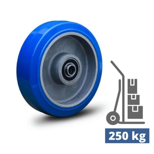 A roda e Rodízios em poliuretano elástico do Colson 5 polegadas de características diferenciadas, pois, suas partes são de poliuretanos elástico de alta qualidade, e moldado em um núcleo de alumino injetado, este material é muito conhecido por apresentar alta absorção de ruídos e dissipar vibrações. Além de ter uma movimentação silenciosa, não deixa manchas no piso mantendo sempre seguro. São recomendados para em movimentação intensiva em industrial. Tem uma forte especialidade de se adaptar a variáveis tipo de pisos, pois, são resistentes a abrasão de asfalto. Composição da roda: Com dureza de 80 shore resiste a variação de temperatura de -40 C 80 C, seu núcleo é em alumínio duro, com duplo rolamento de esferas na cor Azul Características técnicas: Diâmetro da roda (pol): 5 Polegadas - 127 mm Largura da banda da roda : 1.1/2 polegadas 38 mm Comprimento do cubo (mm): 48 mm Rodagem: esfera Rolamento: 15 mm Eixo Paraf: 7/16polegadas - 11,11 mm Capacidade de carga (kg): 250 kg Dureza: 80 shore Material: Poliuretano elástico núcleo em alumínio Temperatura de trabalho: -40 a 80 Cor: azul indicado: concreto liso, asfalto, cerâmica, aço, metal, madeira, Proteção ao piso, trabalho silencioso, água, contato ocasionado com o vapor, tração manual.