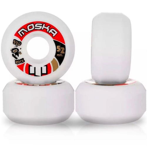 As Rodas Skate Moska Rock são fabricadas em poliuretano, com alto nível tecnológico, sendo submetidas a rigorosos testes em institutos de tecnologia, além dos contínuos testes de rua em alta velocidade. Indicada para street, possui um ótimo desempenho e qualidade.