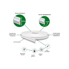 Dimensões axlxp cm : 3,8 x 1,2 x 400 Produzido em: borracha e.V.A Cor acabamento: branco fosco Garantia: 3 anos junto ao fabricante Aplicação: externo ou interno
