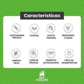 Vantagens: Fácil Aplicação: Material autocolante de última geração, especialmente desenvolvido para molduras. Alta Durabilidade: Lavável, resistente à água e imune a cupins. Material de Qualidade: Produzido com borracha sintética resistente, flexível e de excelente acabamento. Personalizável: Pronto para uso e pode ser pintado com tintas à base de água ou solvente. Fácil Limpeza: Pode ser limpo com pano úmido, detergente neutro ou saponáceo cremoso. Não amarela e não sofre com pragas.