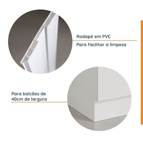O Rodapé 40cm Ipanema foi desenvolvido para trazer maior proteção contra umidade e prolongar a vida útil do móvel, além de adicionar um toque de elegância ao design. Este produto contempla os rodapés frontal e laterais para ser instalado nos balcões de 40cm da linha Ipanema, contudo as presilhas e os pé reguláveis vem acompanhado na compra do módulo a ser instalado. Uma opção prática e funcional para quem busca estilo em sua casa. Acabamento: Pintura Altura: 14 Ambiente Principal: Cozinha Complexidade da Montagem: Baixa: pode ser montado por uma pessoa sozinha Cor: Branco Cor do Produto: Branco Cor Predominante: Branco Escala de Brilho: Fosco Garantia do Fornecedor: 03 meses Informações Complementares: Não acompanha presilhas e pés reguláveis, estes insumos são adquiridos na compra do balcão a ser instalado. Itens Inclusos: 1 Rodapé Frontal e 2 Rodapés Laterais Largura: 40 Linha ou Coleção: Ipanema Manual de Montagem e Instalação: https://product-hub-prd.madeiramadeira.com.br/873476/documents/abf3a553-56cf-407a-94fa-8228b2d056613362ipn04bmanualdemontagem.pdf Material Principal: PVC Necessita Montagem: Sim Origem do Produto: Nacional Peso: 0.5 Profundidade: 46.7 Recomendações de Uso, Manutenção e Limpeza: Use um pano levemente umedecido com água, seguido de pano seco. Não utilize produtos químicos ou abrasivos. Resistente à Chuva: Sim Sistema de Montagem: Presilhas e pés reguláveis. Ean: 7909903446829