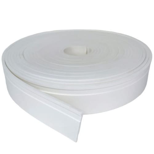 Material: Borracha EVA flexível de alta densidade Cor: Branco Largura: 7 cm Espessura: 8 mm Comprimento: 10 metros lineares por peça Canal traseiro discreto para passar fios finos