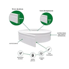 Rodapé de EVA Autocolante RP16 10cm Branco Também usado como rodateto, moldura de portas e janelas ou como sua imaginação preferir!