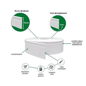 Características Gerais do Produto: aceita Pintura: Sim altura: 15 cm antimofo: sim impermeável: sim marca: meu Rodapé cor: branco : 3 anos junto ao fabricante comprimento: 10 metros espessura: 1 cmAcompanha o produto: 1 Rolo de Rodapé Autocolante Marca: Não Informado Ean: 7893085090294
