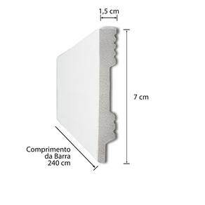 Adicione um toque final elegante aos seus ambientes com os produtos CASABLANCA! Acompanha Ficha Técnica: Não Altura: 7 cm Ambiente Principal: Quarto Complexidade da instalação: Baixa:pode ser montado por uma pessoa sozinha Comprimento: 240 cm Cor: Branco Cor do Produto: Branco Cor Predominante: Branco Espessura: 15 mm Imune a cupim: Sim Indicações de Uso: Indicado para instalações em quartos, salas, cozinhas. Itens Inclusos: 1 barra de rodapé Manual de Montagem e Instalação: https://product-hub-prd.madeiramadeira.com.br/956278/documents/e6887467-6895-4ef0-9344-1b38f9f41e052417510415117278949938931.pdf Material Principal: Poliestireno Origem do Produto: Importado Peso: 0,833 kg/m Resistência à Água: Sim Resistência a umidade: Sim Resistência ao Fogo: Não Tipo de Instalação: Colado Uso Indicado: Interno