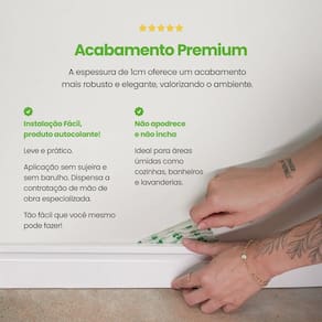Características Adicionais do Produto: Autocolante Resistente a água e imune a cupins Produzido em EVA Borracha Sintética de alta resistência Flexível e se adapta em qualquer tipo de parede, incluindo as com curvas O Fácil de limpar, basta um pano úmido, sem necessidade de produtos específicos Combina com qualquer tipo de piso e parede