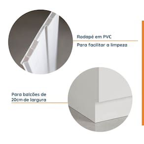 O Rodapé Ipanema foi desenvolvido para trazer maior proteção contra umidade e prolongar a vida útil do móvel, além de adicionar um toque de elegância ao design. Este produto contempla os rodapés frontais e laterais para ser instalado nos balcões da linha Ipanema, contudo as presilhas e os pés reguláveis vem acompanhado na compra do módulo a ser instalado. Uma opção prática e funcional para quem busca estilo em sua casa. Acabamento: Pintura Ambiente Principal: Cozinha codigo_ean: 7900288215673 Complexidade da Montagem: Baixa: pode ser montado por uma pessoa sozinha Cor: Branco Cor do Produto: Branco Escala de Brilho: Fosco Itens Inclusos: 1 Rodapé Frontal, 2 Rodapés Laterais, Manual de Montagem e Kit Ferragens Linha ou Coleção: Ipanema Manual de Montagem e Instalação: https://product-hub-prd.madeiramadeira.com.br/988523107/documents/1782f035-5efa-400a-a53b-6406bac760b399a8a9c43f9ae6dc1755470294.pdf Marca: CabeCasa MadeiraMadeira Material Principal: PVC Necessita Montagem: Sim Origem do Produto: Nacional Peso: 0,6 kg Recomendações de Uso, Manutenção e Limpeza: Use um pano levemente umedecido com água, seguido de pano seco. Não utilize produtos químicos ou abrasivos. Sistema de Montagem: Presilhas e Pés reguláveis