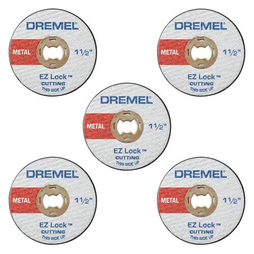 Dremel EZ456, diâmetro de roda de 1 1/2 polegada (38,1 mm), rodas de corte reforçadas com fibra de vidro EZ - Lock™, disco rotativo de corte de ferramentas para corte de metal, 5 peças, médias, vermelhas