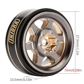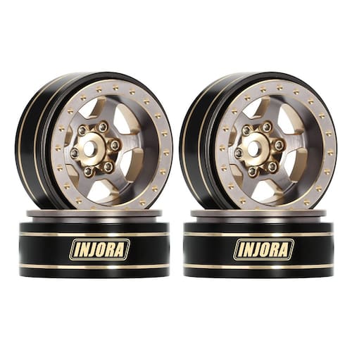 Especificações: Material: latão Desvio negativo: cerca de 3 mm Diâmetro externo: 27,9 mm (1,1 pol.) Largura: 13,5 mm (0,53 pol.) Cubo da roda: 7 mm (0,28 pol.) Cada Peso: 42 g/unidades (1,48 oz) Lista de pacotes: 4 * RC Car 1.0" Plus Wheel Aro - O revestimento cinza adiciona um toque brilhante e melhor aparência, para evitar corrosão. - Essas rodas 1.0 plus têm cerca de 1,1", maiores que 1,0 rodas. Compatíveis com todos os pneus INJORA de 1,0". - A roda 1.0 plus colocará seu carro de controle remoto à frente da curva com desempenho e aparência. - 42 g pesados por roda reduzem o centro de gravidade, melhoram o desempenho de escalada. - Adequado para o carro de esteira TRX4M SCX24 FCX24. Nota: Não é compatível com pneus padrão TRX4M.