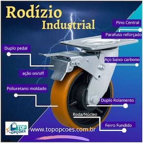 O Rodizio Giratório industrial 6X2 Polegadas serie MR Colson, é indicado para uso diverso, industrias, pequenos pórticos, gruas e girafa, guincho hidráulico, conta com uma estrutura reforçada com grafo em 5 mm de espessura e com soldas internas e externa nas pernas. O diferencial deste Rodizio é o pino central que possui parafuso reforçado, na união entre a placa e o conjunto giratório. Para facilitar a manutenção do Rodizio o que prolonga a vida útil do conjunto, A pista possui um bico de graxeira o que deixa mais simples e cômoda o engraxamento das pistas, além de possuir vedação contra pó/poeira. Sua roda é fabricada com poliuretano de alta qualidade com o núcleo em ferro fundido, com duplo rolamento de esfera nas extremidades. Seu garfo possui o sistema de trava duplo pedal com ação on/off Características técnicas: Diâmetro da roda (pol): 6 Polegadas - 152,4 mm Placa giratória: 130 X 140 MM Com freio: SIM Largura da banda da roda : 2 polegadas 50,80 mm Comprimento do cubo (mm): 11 mm Raio de giro do rodízio (mm): 136mm Altura total (mm): 197 mm Capacidade de carga (kg): 450 kg Dureza: 95 shore Material: PU - Poliuretano Temperatura de trabalho: -20 a 70 Cor: Amarelo indicado: concreto liso, asfalto, cerâmica, aço, metal, madeira, Proteção ao piso, trabalho silencioso, água, contato ocasionado com o vapor, óleo industrial, tração manual.