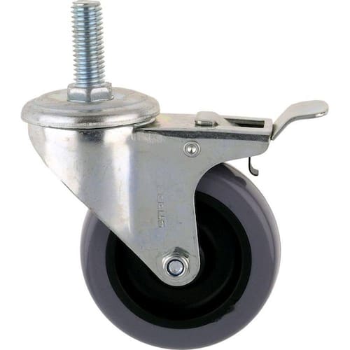 Eixo giratório com parafuso rosqueado com trava. Utilizado como base para movimentação e manobra de moveis, bancadas, carrinhos, divisórias entre outros.