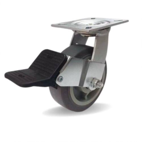 Roda de borracha elastômera industrial média, proporciona trabalho silencioso com a absorção de vibrações, movimentação macia, e proteção ao piso contra risco e manchas,