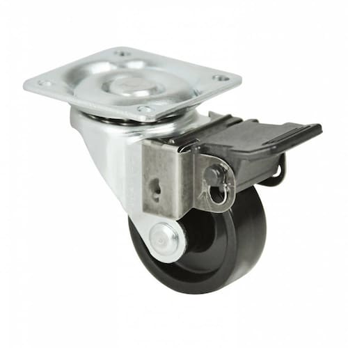 Rodinha rodízio com roda Ø36mm preta Rodizio com freio Valor da peça Diâmetro: 36mm Capacidade de Carga: 40 Kg Altura Total: 50mm Fixação: Chapa plana Sugestões de Aplicação: Cachepôs, suporte de vasos, fruteiras, porta-botijão, racks pequenos, puffes, berços, pés de cama, gaveteiros, mesa de cabeceira, armários, gabinetes, expositores, mesas de centro, suportes de CPU e pequenos móveis em geral. Marca: Não Informado
