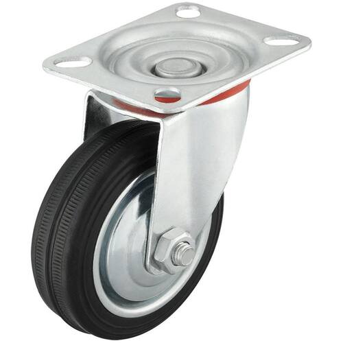 Rodízio De Borracha Giratório 3 pol. 186015 - Worker - - Roda de borracha com núcleo em chapa de aço zincado estampado. - Base em chapa de aço zincado. - Eixo roda com rolete. Eixo: 37mm Altura total: 95mm Capacidade de Carga: 50kg Características Gerais do Produto: Tamanho: 10X10X10cm 1,0Kg : 3 meses Marca: Não Informado