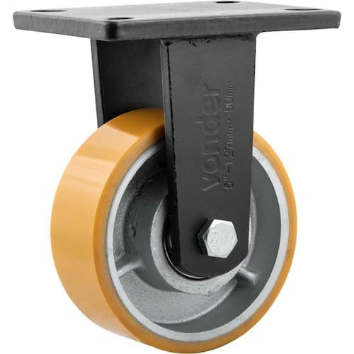 Conta com alta capacidade de carga e resistência, facilitando a movimentação e a manobra com baixos níveis de ruídos. Não danifica o piso. Dureza do PU: 92 Shore A.