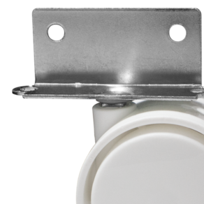 Tipo: Fixo com freio Material: Plástico injetado com aço Acabamento: Branco Chapa: L 15mm Diâmetro da roda: 40mm Largura da roda: 37mm Altura total: 50mm Capacidade de carga: 25kg por rodízio