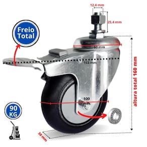 Diâmetro da roda (pol): 5 polegadas - 125 mm - 12,5 cm