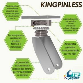 Garfo fabricado em aço AISI 1045 e espessura de 8 mm, solda MIG interna e externamente nas pernas do garfo, cabeçote usinado e temperado para maior precisão e resistência, não possuí pino mestre