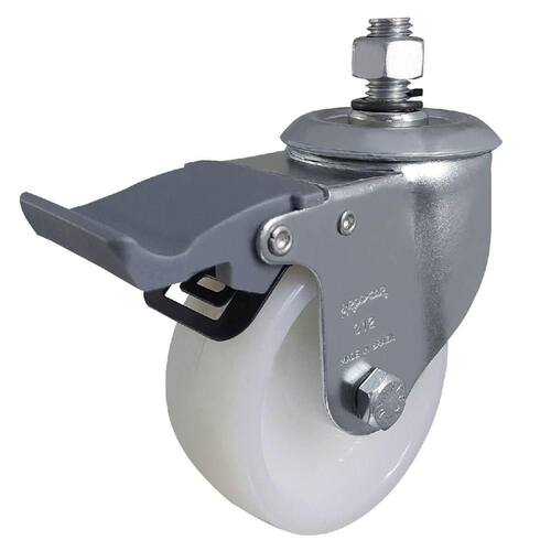 - Roda: Roda inteiriça de nylon injetado, utilizado para cargas leves e moderadas. Resistente a derivados de petróleo, sais e alguns ácidos.