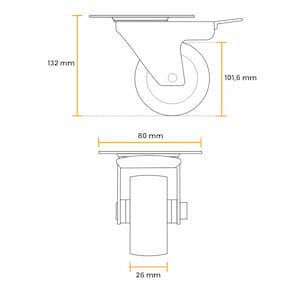 Rodízio Giratório de Borracha, C/ Freio Total, 4" A09742-GFT - Ajax.
