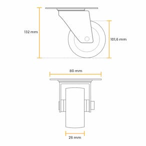 Rodízio Giratório de Borracha, 4" A09742-G - Ajax.