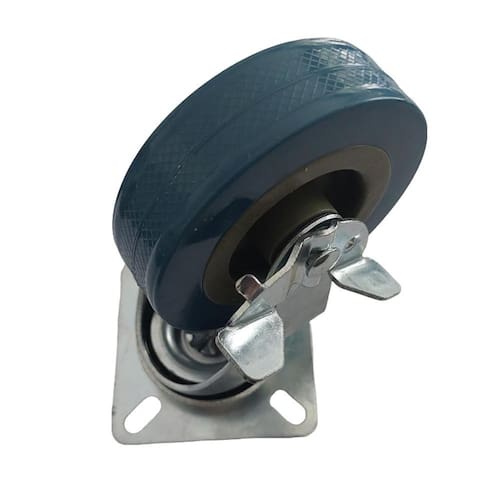rodízio giratório com freio pedal acionamento simples trava somente a roda fixação placa quadrada 4 furos medidas 65 x 65 mm entre furos 45 x 45 mm altura rodízio 100 mm capacidade carga por rodízio 60 kgs eixo furo passante sem rolamento roda 3 polegadas de diametro 75mm largura 20 mm garantia 3 meses defeito fabricação Marca: Movifacil
