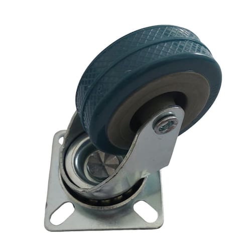 Garfo fabricado em chapa estampada e cabeçote com dupla pista de , acabamento zincado. Eixo da roda rebitado roda up - poliuretano termoplástico. Dureza: 90 shore a. -20ºc a +70ºc . Produzida com revestimento em poliuretano termoplástico e núcleo em polipropileno copolímero recicláveis. Ideal para quem procura excelente capacidade de carga aliada a uma ótima proteção do piso com baixo ruído no deslocamento, proporciona excelente resistência a abrasão e impactos. Resistente a graxas, óleos minerais e alguns ácidos. A velocidade de trabalho indicada é até 4 km/h