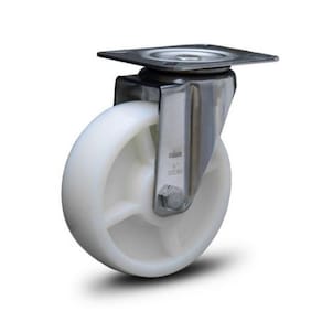 Rodizio industrial aço Inox 8x2 giratório pol. placa Sem freio com rolamento Os Rodizio de maior durabilidade e resistente a maresia e outros produtos agressivos, são os em aço inox ou latão. A corrosão (oxidação) deriva do excesso de umidade, calor e de partículas de sal, através do contato químico ou eletroquímico num determinado meio de exposição, na maioria das vezes, a corrosão metálica está associada à exposição do metal num meio no qual existe a presença de moléculas de água, visto muito no litoral brasileiro, para solucionar este problema usa-se rodizio inoxidável. Aplicação: Reboque de lancha, reboque de barco, caretinha para lancha, caretinha de barco, litoral, praia, Roda Carreta de Encalhe. Roda: COMPOSIÇÃO: Roda: Em nylon 100% (poliamida 6). Dureza 75 Shore D (-30C a 100C). Núcleo: Em nylon 100% (poliamida 6) com duplo rolamento de esferas de precisão , 6204ZZ (8), e manga de eixo 1/2". Garfo: Em aço inox AISI 304 com dupla pista de esferas, pino mestre com parafuso reforçado, freio em inox. Características técnicas: Diâmetro da roda (pol): 8 polegadas 203,20 mm com freio: não Garfo em aço inox 304 roda em nylon Placa: 127x110mm Largura da banda da roda : 2" pol. ( 50,8 mm) Comprimento do cubo (mm): 62 mm Diâmetro do eixo: 1/2" - 12.7 mm Raio de giro do rodízio (mm): 150 mm Altura total (mm): 245 mm Capacidade de carga (kg): 800 kg Dureza: 75 shore Temperatura de trabalho: -30 a 100 Imagens meramente Ilustrativa. indicado: concreto liso, cerâmica, aço, metal, madeira, Proteção ao piso, trabalho silencioso, água, contato ocasionado com o vapor, cavacos metálico, óleo industrial, álcool, tração manual.