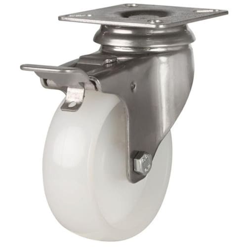 Rodizio Inox 5 Pol. Giratório Placa Freio Total 170 Kg Rodízio inox 304 de 5 Polegadas A Solução Versátil e Duradoura Se você procura durabilidade inigualável e versatilidade excepcional, o rodízio de 5 polegadas em aço inox 304 é a escolha perfeita. Com sua estrutura resistente em aço inox e freio de trava total, este equipamento foi projetado para superar desafios. Por que recomendamos este rodízio? Construção de Qualidade Superior: Sua estrutura completa em aço inox 304 garante alta resistência à corrosão, ideal para aplicações industriais e ambientes alimentícios. Desempenho Impecável: As rodas em nylon puro de alta performance, aliadas à dupla pista de esferas, oferecem facilidade de manobra e resistência a produtos químicos, até mesmo em altas temperaturas de até 100C. Versatilidade Sem Limites: Recomendado para uma ampla gama de usos, desde indústrias alimentícias, frigoríficos, indústria Química, ambientes úmido, are de maresia, açougues até panificadoras, este rodízio é a solução confiável que se adapta a diferentes necessidades. Características Técnicas Notáveis: Diâmetro da roda de 5 polegadasCom freio de trava totalGarfo e rodas em nylon de alta resistênciaPlaca de 105x80mm para estabilidade adicionalLargura da banda da roda de 1.1/4 (30mm)Suporta até 170 kg de carga com uma dureza de 75 shoreResistência a temperaturas de -30 a 100, oferecendo adaptabilidade em diferentes ambientes de trabalho.Este rodízio é muito mais do que um simples acessório - é a solução confiável para tornar as tarefas industriais mais ágeis e eficientes