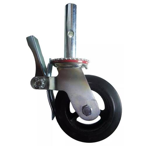 Medidas: 6 x 2 Altura sem espiga: 186 mm Altura da espiga: 140 mm Diâmetro da espiga: 32mm Peso Unitário: 4 kg Rodízio giratório 6x2 Espiga Lisa com freio Núcleo de ferro fundido Banda de borracha com alta qualidade na cor preta Rolamento de rolete Capacidade de peso: 325 kg Trava O giro e Movimento ou somente giro ou movimento Ean: 7898505231462