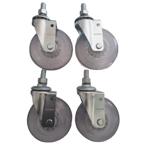 Garfo fabricado em chapa estampada e cabeçote com uma pista de , acabamento zincado. Eixo da roda rebitado, roda 75 mm colorgel, composto termoplástico com pvc transparente. Dureza: 90 shore a -10ºc a +50ºc injetada com revestimento em composto termoplástico com pvc transparente em diversas cores e núcleo em acrílico. Ideal para móveis, gira com muita facilidade, requerendo pouco esforço para movimentação. Não deforma sob carga estática, apresenta boa resistência química e a impactos moderados. Produzida com material reciclável 4 rodizios giratórios fixação parafuso roscado 3/8 x 25 mm altura rodízio 89 m capacidade carga por rodízio 50 kgs eixo furo passante sem rolamento garantia 3 meses defeito fabricação Marca: Movifacil