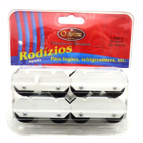 Com medidas de altura de 3,7 cm, comprimento de 8 cm e largura de 4 cm, o pé do rodízio é feito em aço e possui pintura epóxi, o que o protege contra ferrugem. O parafuso que acompanha o kit tem 3 cm de comprimento e diâmetro de 6 mm. O kit é composto por 4 peças, sendo 4 parafusos, 4 porcas, 4 arruelas e 4 rodízios.
