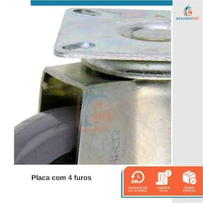O Rodízio Giratório é utilizado como base para movimentação e manobra de móveis, bancadas, carrinhos e outros. Com eixo giratório, trava e placa para parafusar em aço carbono zincado, garantindo agilidade e resistência. CARACTERÍSTICAS TÉCNICAS:Material: Aço carbono e PVCMedidas: 76mm - 3 diâmetro rodinha Placa com 4 furosCapacidade máxima: 50kgMarca: StarferRef.: 12026145