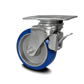 A rodizio giratório poliuretano elástico com placa Colson 5 polegadas de características diferenciadas, pois, suas partes são de poliuretanos elástico de alta qualidade, e moldado em um núcleo de alumino injetado, este material é muito conhecido por apresentar alta absorção de ruídos e dissipar vibrações. Além de ter uma movimentação silêncios, leve e macio de manobrar, não deixa manchas no piso e não tem o risco comprometer o piso sobre qualquer circunstância. São recomendados para em movimentação intensiva em industrial. Tem uma forte especialidade de se adaptar a variáveis tipo de pisos, pois, são resistentes a abrasão de asfalto. freios com trava total, travando o giro e a placa Composição da roda: Com dureza de 80 shore resiste a variação de temperatura de -40 C 80 C, seu núcleo é em alumínio duro, com duplo rolamento de esferas na cor Azul Características técnicas: Diâmetro da roda (pol): 5 polegadas 127 mm com freio: sim Placa: 127x100mm Largura da banda da roda : 1.1/2" pol. (31,00 mm) Comprimento do cubo (mm): 48 mm Diâmetro do eixo: 7/16 - 11,11 mm Raio de giro do rodízio (mm): 113 mm Altura total (mm): 156 mm Capacidade de carga (kg): 250 kg Dureza: 90 shore roda em poliuretano elástico com núcleo em alumío Temperatura de trabalho: -40 a 80 cor azul Imagens meramente Ilustrativa. indicado: concreto liso, cerâmica, aço, metal, madeira, Proteção ao piso, trabalho silencioso, água, contato ocasionado com o vapor, cavacos metálico, óleo industrial, álcool, tração manual.