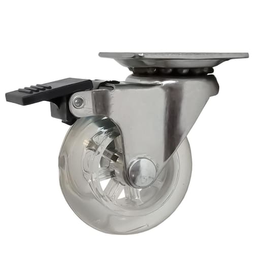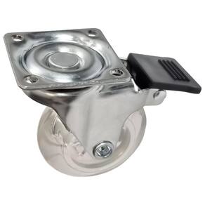 Rodízio de Silicone 50mm Gel Transparente Base Giratória Com Freio XF Já pensou a tragédia em ter seus pisos todos riscados com o passar do tempo Não se arrisque. Instale o rodízio silicone em seus móveis e evite riscos ou ranhuras no piso e garanta desempenho com um deslizar mais suave do móvel. - Marca: XF - Fabricante: Vaz Ferragens - Referência: V17071 - Rodízio COM FREIO - Diâmetro da Roda: 50mm - Altura total do Rodízio: 63mm - Espessura chapa: 1,7m - Tamanho da Chapa: 42mm - Distância aproximada entre Furos: 35mm - Silicone evita que o piso fique riscado - Eixo com rolamentos. Mais suavidade e agilidade aos movimentos - Design moderno - Capacidade de Carga: 35Kg cada rodízio - Cor da Base: Cromado - Base Giratória para melhor movimentação do móvel - Rodízio de silicone de alta qualidade - Alta performance e eficiência - Resistente e durável - NÃO acompanha parafusos para instalação - Podem ser em mesas, vasos de plantas, puffs, pequenas plataformas, servem para facilitar a movimentação do objeto além de agregar estética ao produto. - Peso bruto: 100 gramas - : 90 dias Marca: Não Informado Ean: 7794569834857
