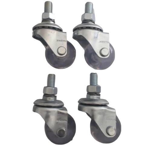 Garfo fabricado em chapa estampada e cabeçote com uma pista de , acabamento zincado. Eixo da roda rebitado, roda 35 mm colorgel, composto termoplástico com pvc transparente. Dureza: 90 shore a -10ºc a +50ºc injetada com revestimento em composto termoplástico com pvc transparente em diversas cores e núcleo em acrílico. Ideal para móveis, gira com muita facilidade, requerendo pouco esforço para movimentação. Não deforma sob carga estática, apresenta boa resistência química e a impactos moderados. Produzida com material reciclável 4 rodizios giratórios fixação parafuso roscado 3/8 x 25 mm altura rodízio 45 mm capacidade carga por rodízio 30 kgs eixo furo passante sem rolamento garantia 3 meses defeito fabricação Marca: Movifacil