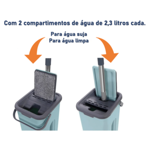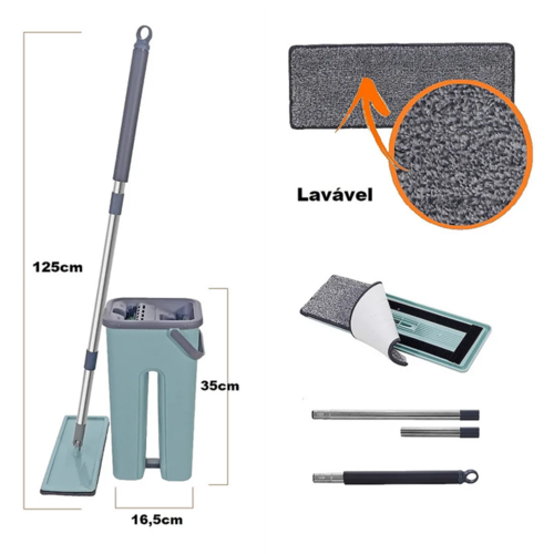 O Flat Mop vai substituir a vassoura, o rodo e o pano de chão na hora da limpeza. Com seu grande poder de absorção, graças a seu refil de microfibra que absorve a água e a sujeira muito mais rápido e com muito mais facilidade, possui MOP giratório 360° super eficiente e prático.