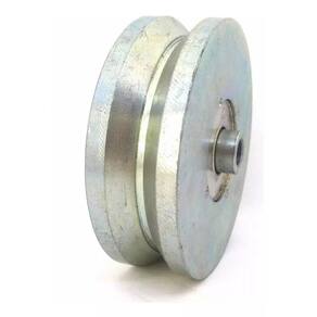 Roldana de aço 5" canal duplo em v Desenvolvidas para trilhos e para cabos de aço Marca: metalpark Modelo: aço canal duplo em v para portão Tamanho / diâmetro: 125mm / 5" Largura do canal: 15mm Largura sem o tubo: 36mm Diâmetro / circunferência do tubo: 20mm Diâmetro/ circunferência interna do tubo: 12,8mm Peso: 3050g Corre em trilho de 5/8" Para ser utilizada com parafuso sextavado 1/2" x 3, cabeça chave 19 e porca 19 Não acompanha parafuso