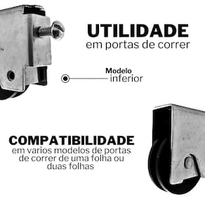 Roldana compatível com a grande maioria das portas de correr de uma ou duas folhas: Machado, Ramassol, Gerotto, CRV, Ferreira, Brasil , Aço Forte etc