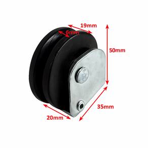Modelo: Guia Inferior Fixo Tamanho / Diâmetro do rodízio: 45mm Tamanho do encaixe: 50mm de altura x 35mm de largura x 20mm de profundidade Canal "U" da Roldana: 6mm