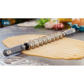 - Ideal para cortar massas manualmente (ravióli e agnoline); - Possui 9 lâminas (corta 8 tiras de massa por vez); - Largura do corte 2,90cm; - Cabo com detalhe de apoio, proporcionando maior firmeza e segurança no manuseio; - Cabo com furo passante para pendurar o utensílio; - Design moderno e inovador com cores diferenciadas; - Rolo desenvolvido em aço cromado; - Cabo do rolo em polipropileno; - Prático e fácil de usar.
