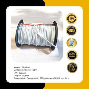 Composição: 70% poliester e 30% Elastodieno Largura: 0.2mm Metragem: 50 metros Cor: Branco Numeração:n2 CUIDADOS DE CONSERVAÇÃO