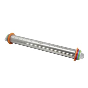 -possui medidas no corpo do rolo para ajudar a fazer as receitas com maior precisão. - Os anéis possuem tamanhos diferenciados em milímetros e em polegadas.