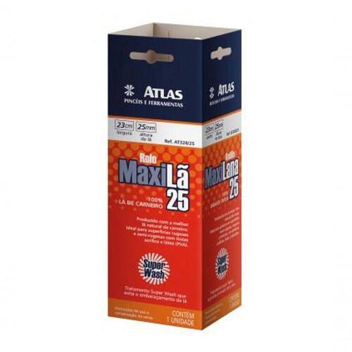 Rolo De Pintura 100% Lã 23cm - Atlas Ideal para pinturas em superfícies rugosas e semirrugosas com tinta acrílica PVA, látex e esmalte. Altura da Lã de 25 mm. Especificações Uso indicado Superfícies Rugosas e Semi Rugosas Peso 100 g Material Lã Natural Largura do Rolo 23 cm Altura 8 cm Largura 8 cm Comprimento 23 cm Peso Bruto 0.1 kg