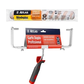 Kit Profissional de Pintura Atlas - Rolo 46cm + Garfo Duplo Ideal para quem busca rendimento, agilidade e acabamento profissional. O Rolo Rendeplus 46cm cobre grandes áreas com rapidez, oferecendo excelente absorção e liberação de tinta. Já o Garfo Duplo AT360/46 garante firmeza e conforto, com estrutura reforçada e cabo emborrachado, sendo compatível com rolos de 30 a 46cm e prolongadores com rosca. Benefícios: Alta cobertura com rolo de 46cm Manta resistente: microfibra de poliéster 19mm Ideal para superfícies semi-rugosas Garfo duplo ajustável: firmeza e estabilidade Cabo ergonômico e compatível com prolongadores com tintas acrílica, PVA e esmalte