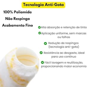 Kit Profissional Atlas - Rolo AntiGota 46cm + Garfo Duplo AT360/46 Ideal para quem busca acabamento fino, rapidez e praticidade na pintura de grandes áreas. Este kit reúne o Rolo de Pintura AntiGota 46cm, que proporciona cobertura uniforme com menos respingos, e o Garfo Duplo AT360/46, resistente e ajustável para rolos grandes, garantindo firmeza e conforto no . Rolo de Pintura AntiGota 46cm Com tecnologia AntiGota, esse rolo minimiza respingos e evita sujeiras, sendo ideal para paredes lisas como massa corrida, gesso e drywall. Sua manta de 10mm em poliamida garante alta absorção, acabamento profissional e maior produtividade ao cobrir mais área em menos tempo. Garfo Duplo Profissional AT360/46 Projetado para uso com rolos de 30cm a 46cm, o garfo possui estrutura reforçada em aço e alumínio, oferecendo leveza e durabilidade. Seu cabo anatômico e emborrachado proporciona pegada firme e confortável. Compatível com extensores com rosca, facilita a pintura em locais altos ou de difícil acesso. Benefícios do Kit: Acabamento fino e com menos respingos tecnologia AntiGota Alta produtividade: rolo largo de 46cm Manta de poliamida 10mm: absorve e libera tinta com eficiência Garfo duplo ajustável: encaixe firme e estabilidade durante o uso Cabo ergonômico e compatível com prolongadores Ideal para tintas Acrílica, Látex PVA e Esmalte Reutilizável, resistente e fácil de limpar