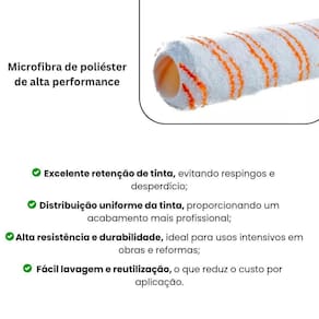 Kit de Pintura Atlas - Rolo 46cm + Garfo Duplo Ideal para quem busca rendimento, agilidade e acabamento . O Rolo Rendeplus 46cm cobre grandes áreas com rapidez, oferecendo excelente absorção e liberação de tinta. Já o Garfo Duplo AT360/46 garante firmeza e conforto, com estrutura reforçada e cabo emborrachado, sendo compatível com rolos de 30 a 46cm e prolongadores com rosca. Benefícios: Alta cobertura com rolo de 46cm Manta resistente: microfibra de poliéster 19mm Ideal para superfícies semi-rugosas Garfo duplo ajustável: firmeza e estabilidade Cabo ergonômico e compatível com prolongadores com tintas acrílica, PVA e esmalte Ean: 7894690047246